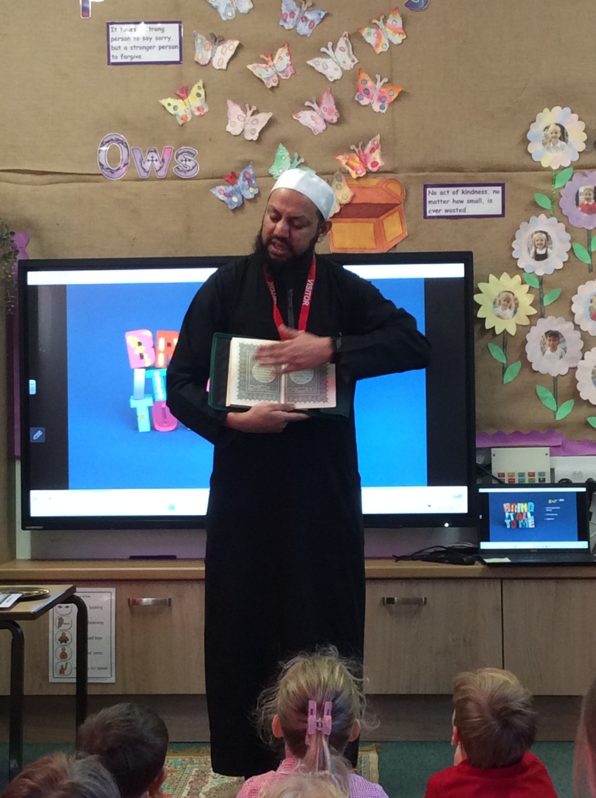 We learnt that we must take off our shoes to go onto the prayer mat as a way of showing respect.